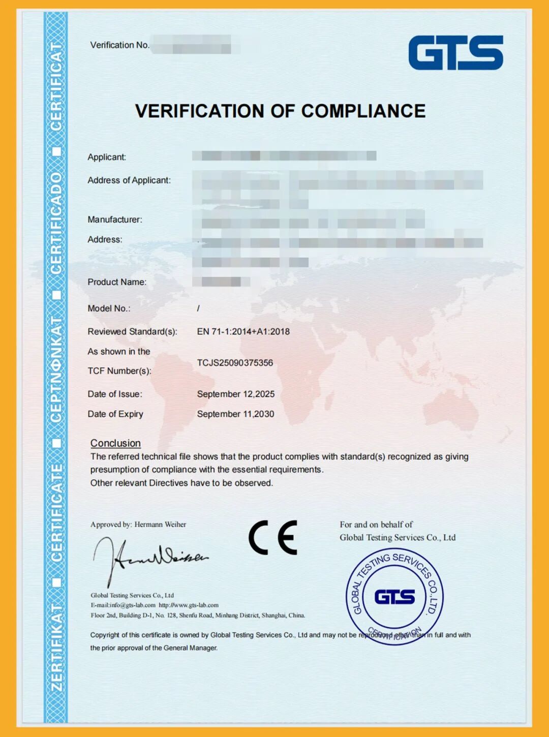 该证书并非欧盟官方文件,而是合规辅助文件。